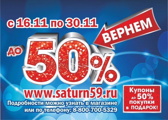 21 ноября 2016 годаСейчас в Сатурн-Р акция: "КУПОНОМАНИЯ"!